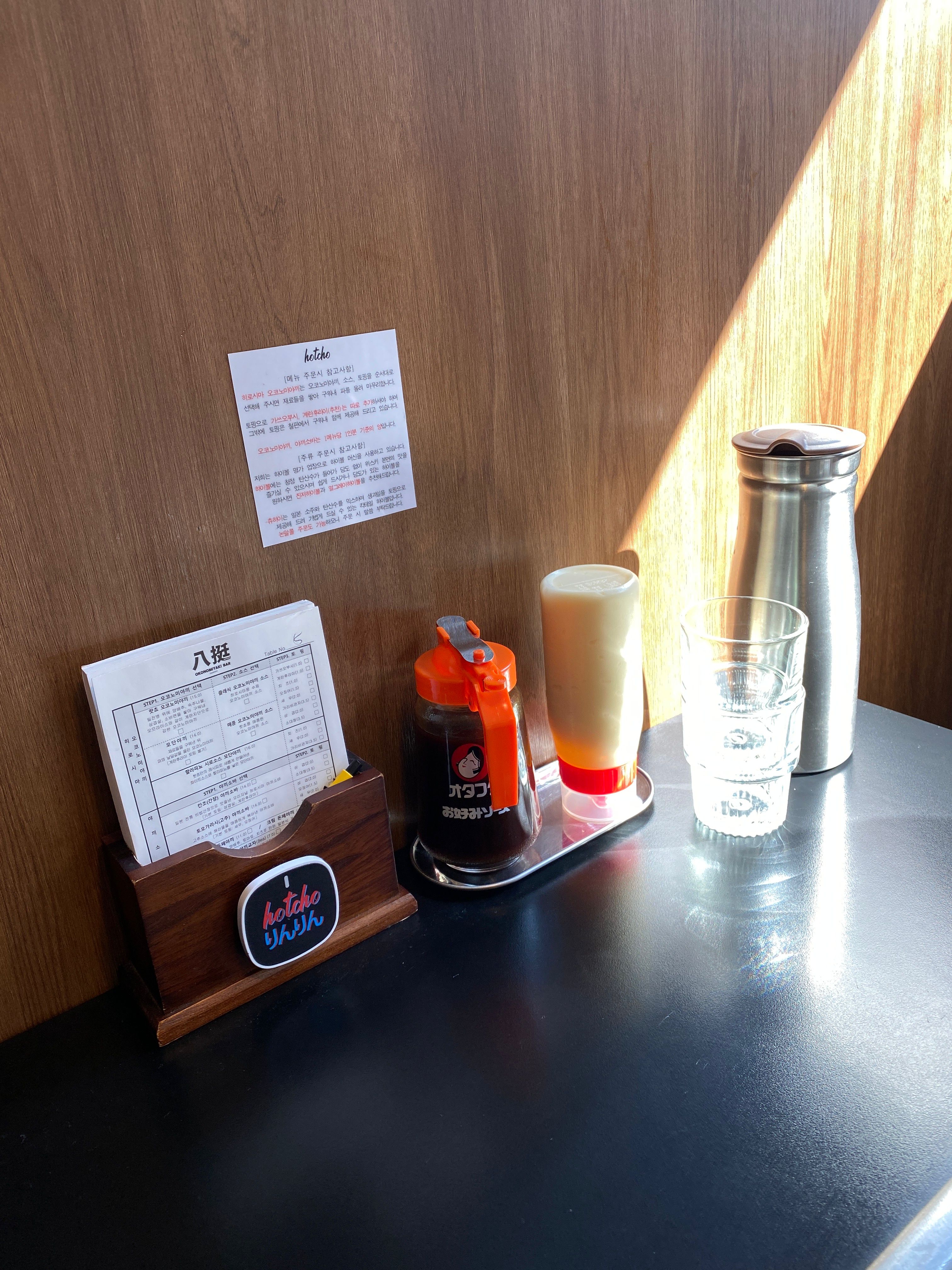 요렇게 소스와 집기류가 세팅되어있어요 🍽️