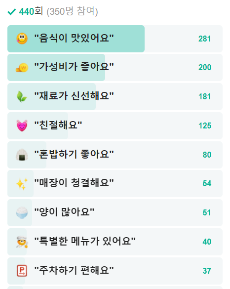 딱보면 맛과 가성비, 재료 상태가 좋다는 걸로 함축되네요.