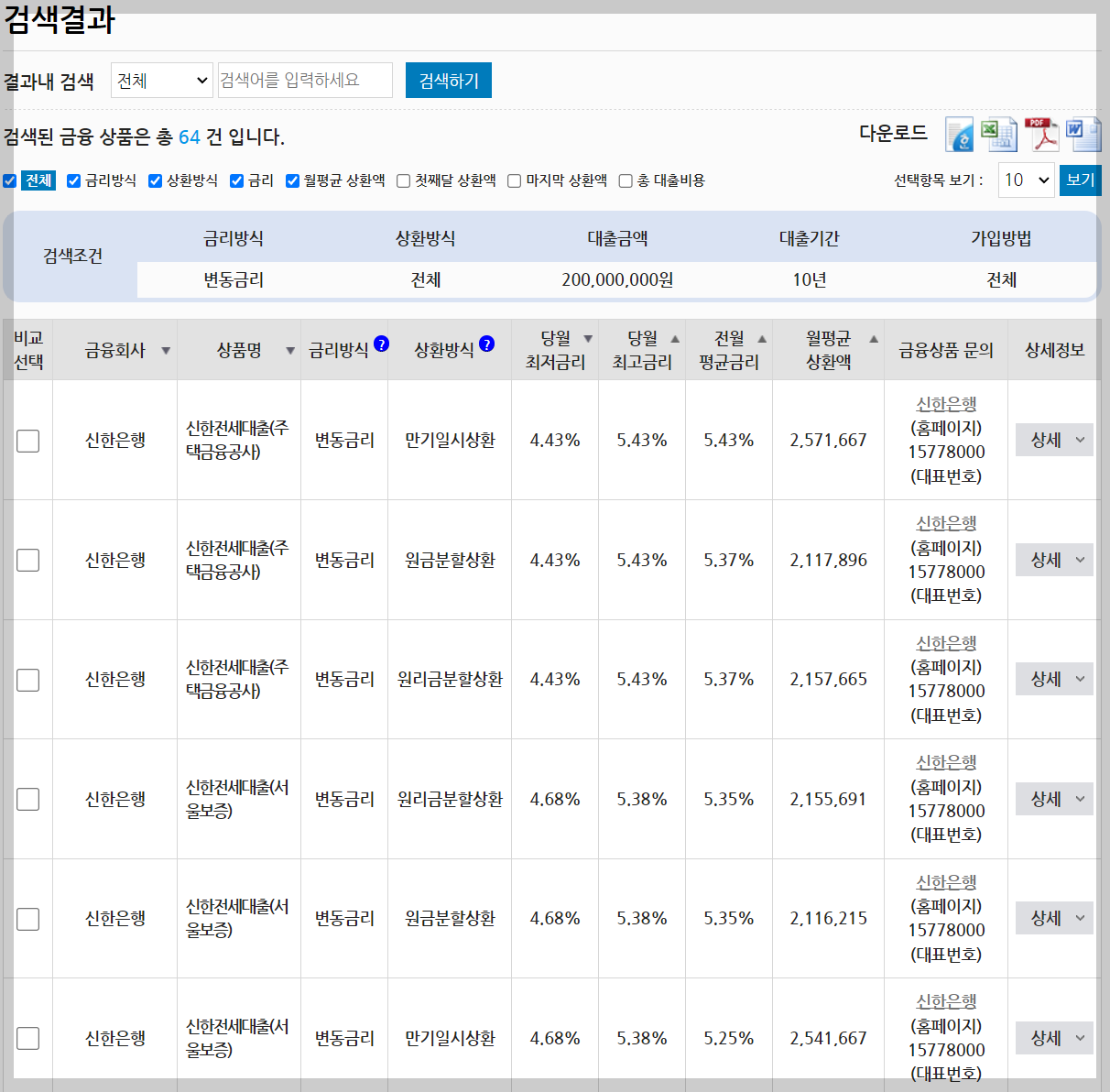 금리방식은 변동금리로, 그 외 조건은 구분 없이 해볼게요.
