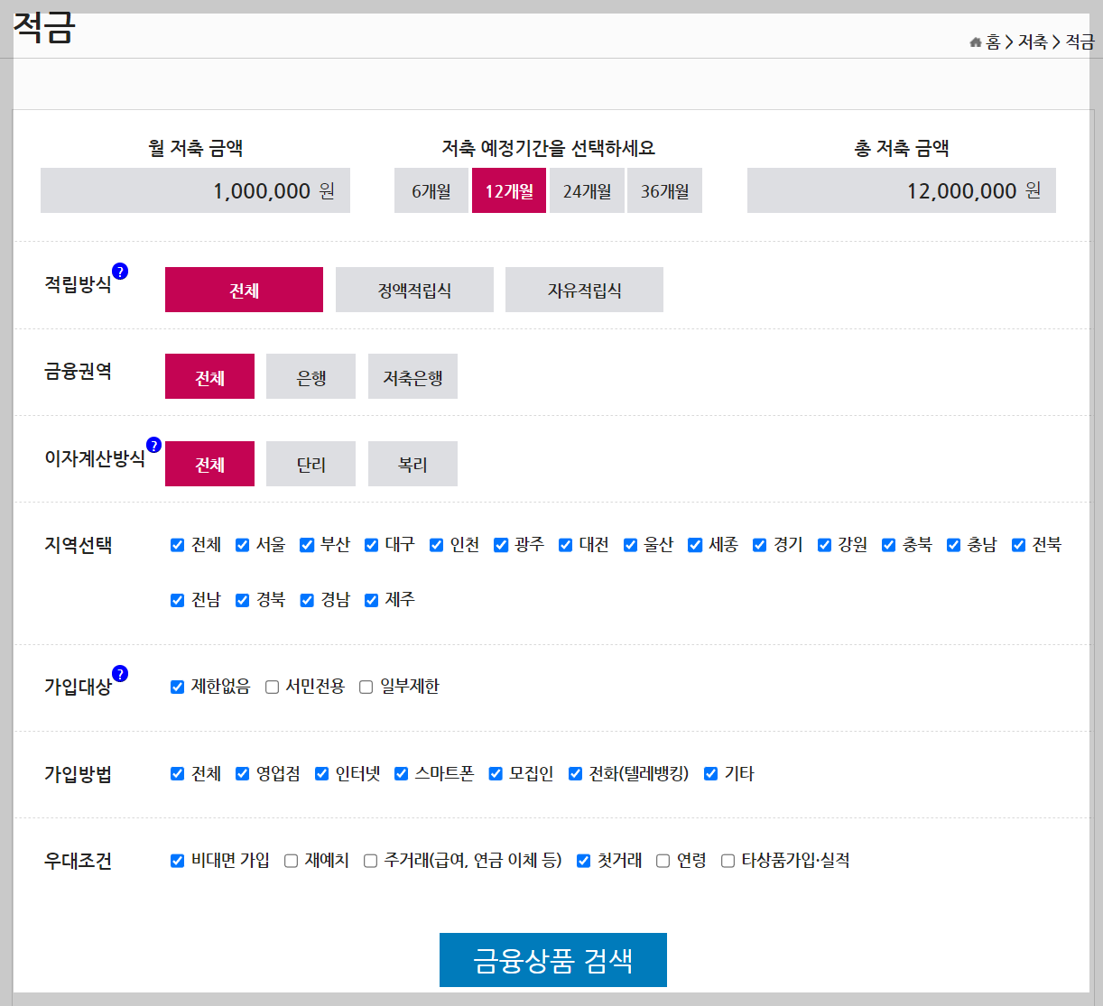 금리 좋은 적금 상품 검색 결과 보기