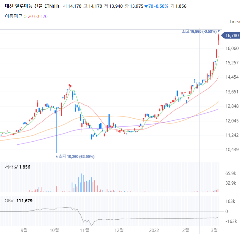 대신 알루미늄 선물 일봉