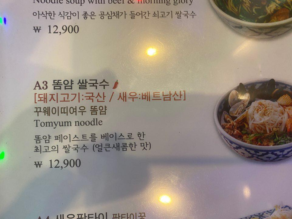 쌀국수는 똠얌 쌀국수!! 얼큰한 맛이 일품입니다.