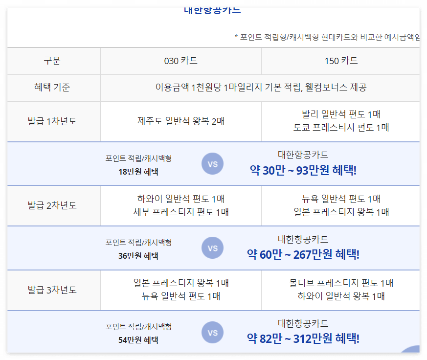 발급 1차 연도만 돼도 제주도, 발리 일반석 편도, 도쿄 프레스티지 편도 1매까지 가능하다니