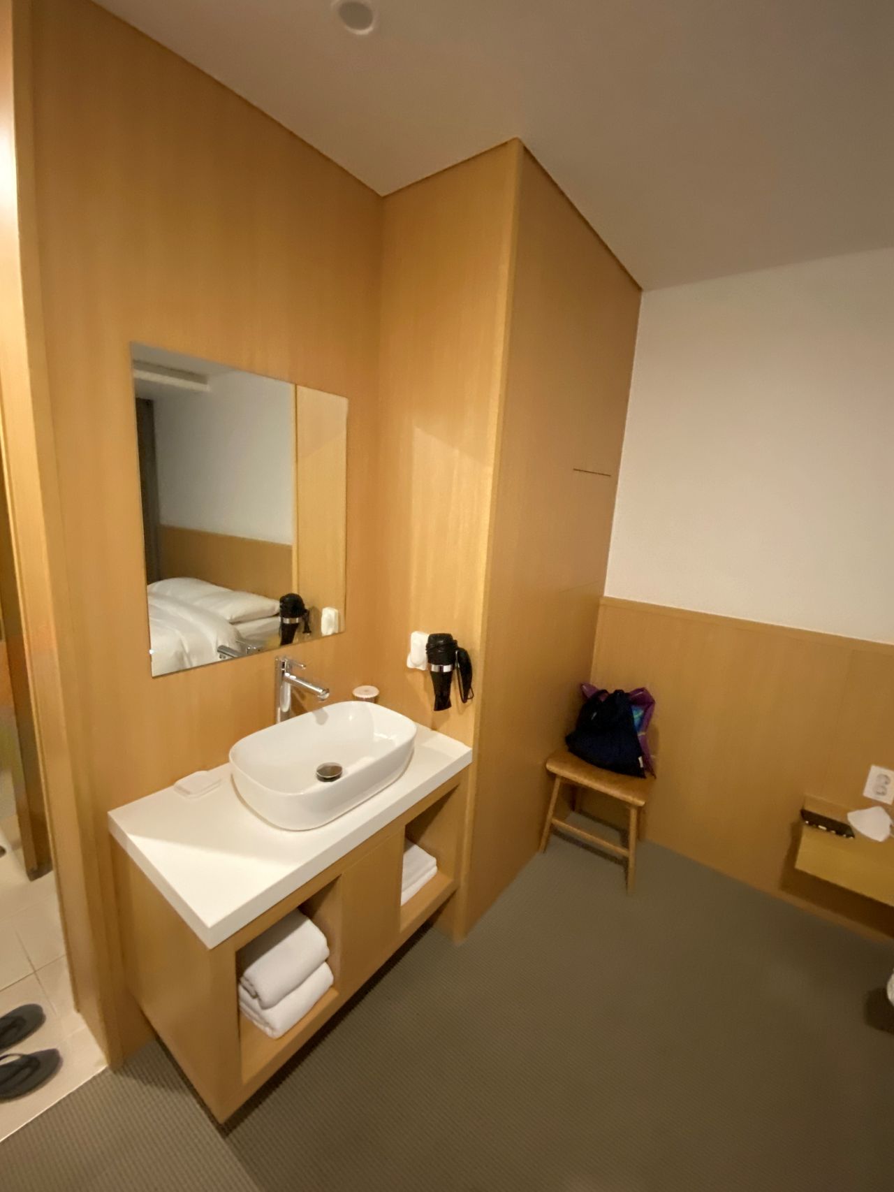 아무튼 객실에는 세면대와 수건, 그리고 옷걸이 등등 간단하게 필요한 것만 준비되어 있습니다.