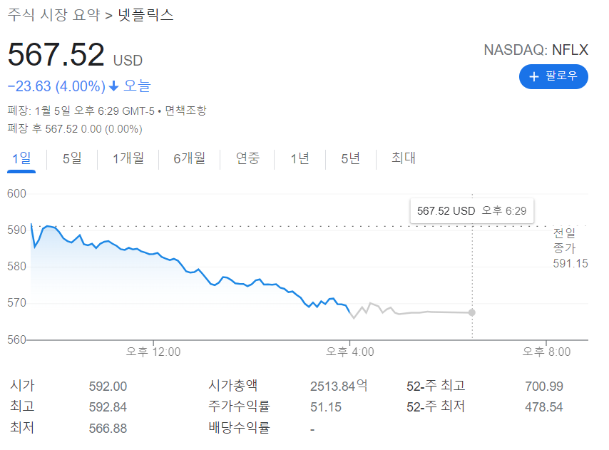 어제 미장 시작할때만해도 보합정도로 보였는데 시간이 지나면서 주르륵 흘러내리는 모습이었다.