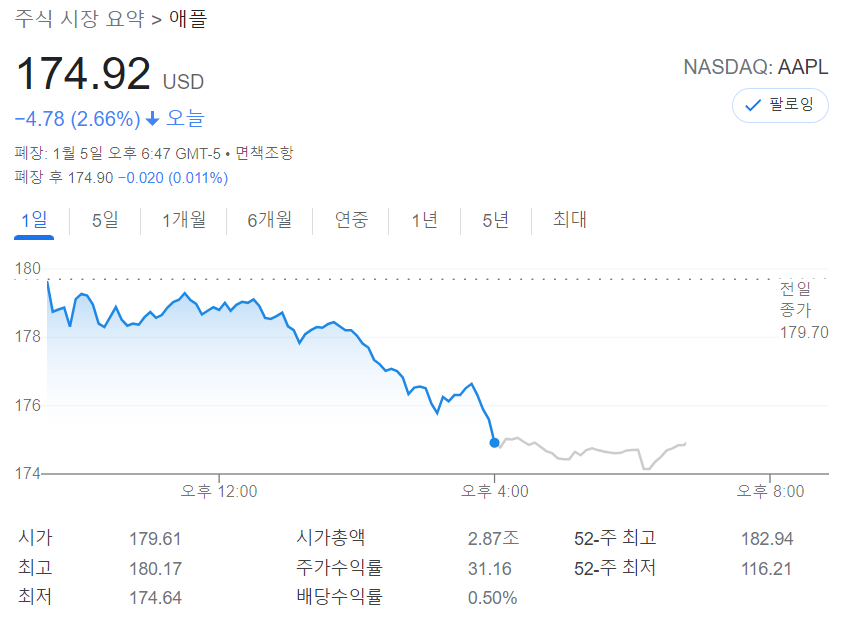 어제 미장 시작할때만해도 보합정도로 보였는데 시간이 지나면서 주르륵 흘러내리는 모습이었다.