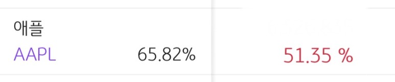 애플은 정말 오랜만에 50% 보는중.. 계속 신고가 갱신중이라서 두근두근하면서 지켜보고 있다.