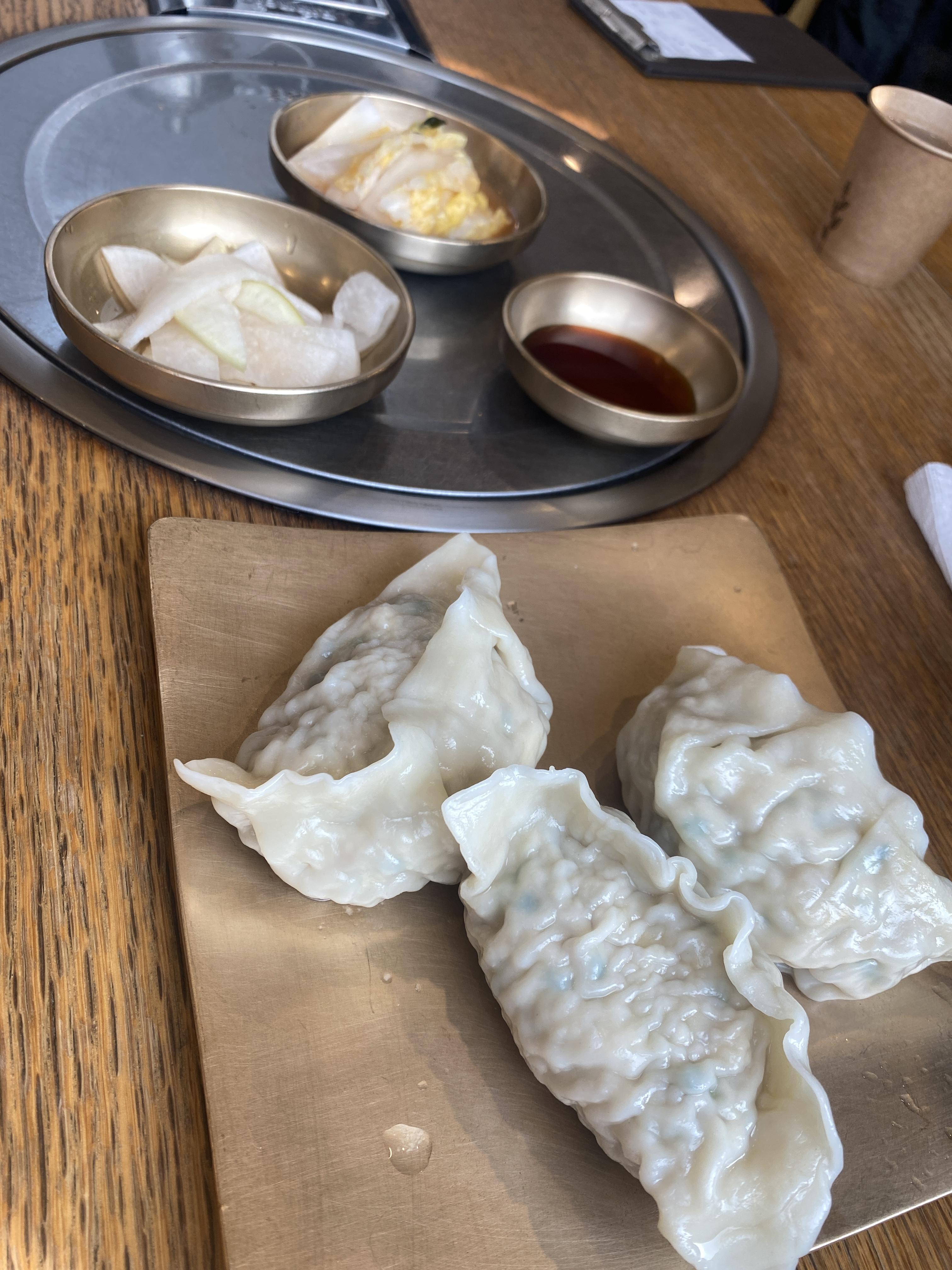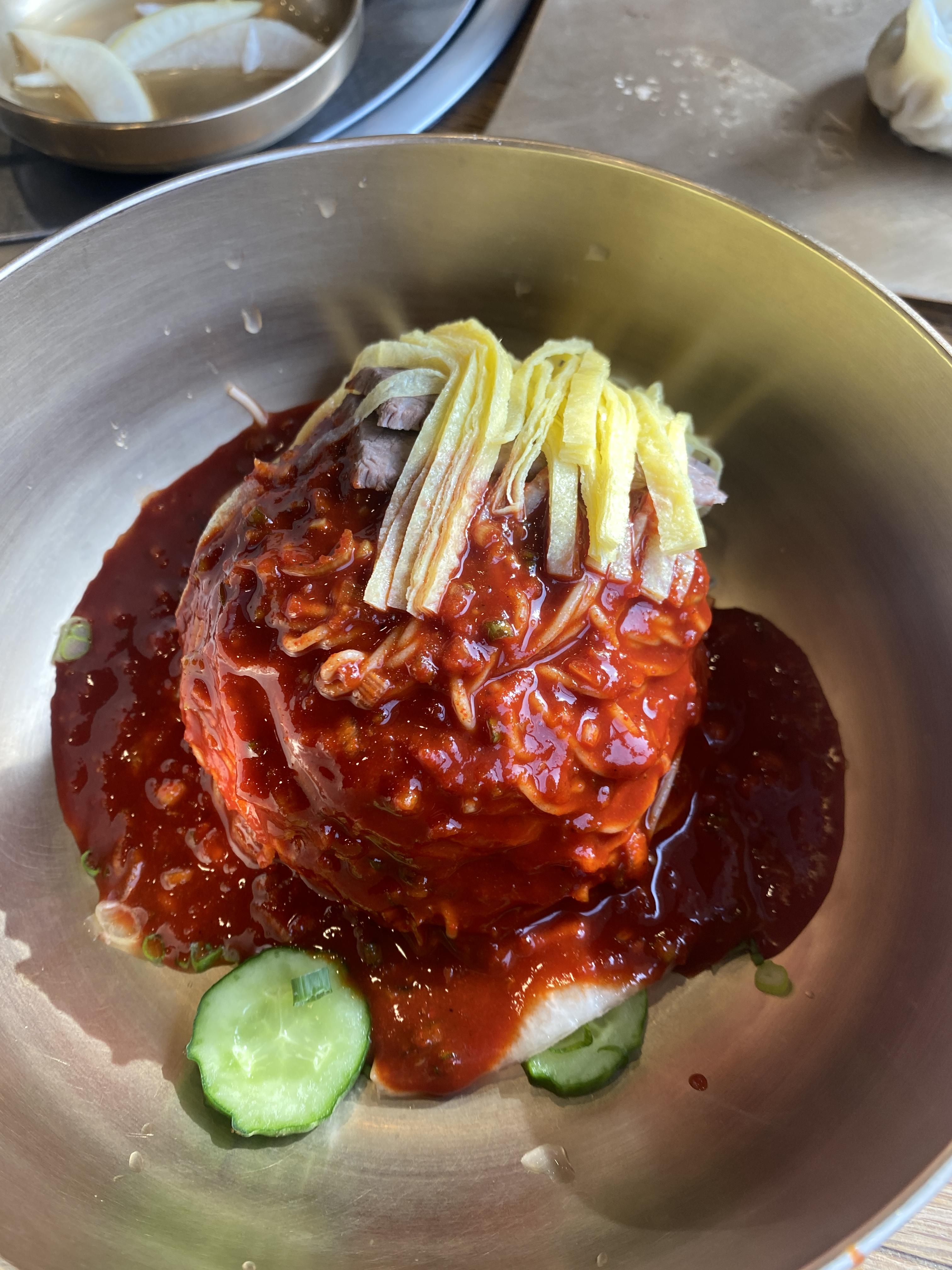 저희는 평양냉면과 비빔면, 그리고 접시만두 반접시를 시켰습니다.