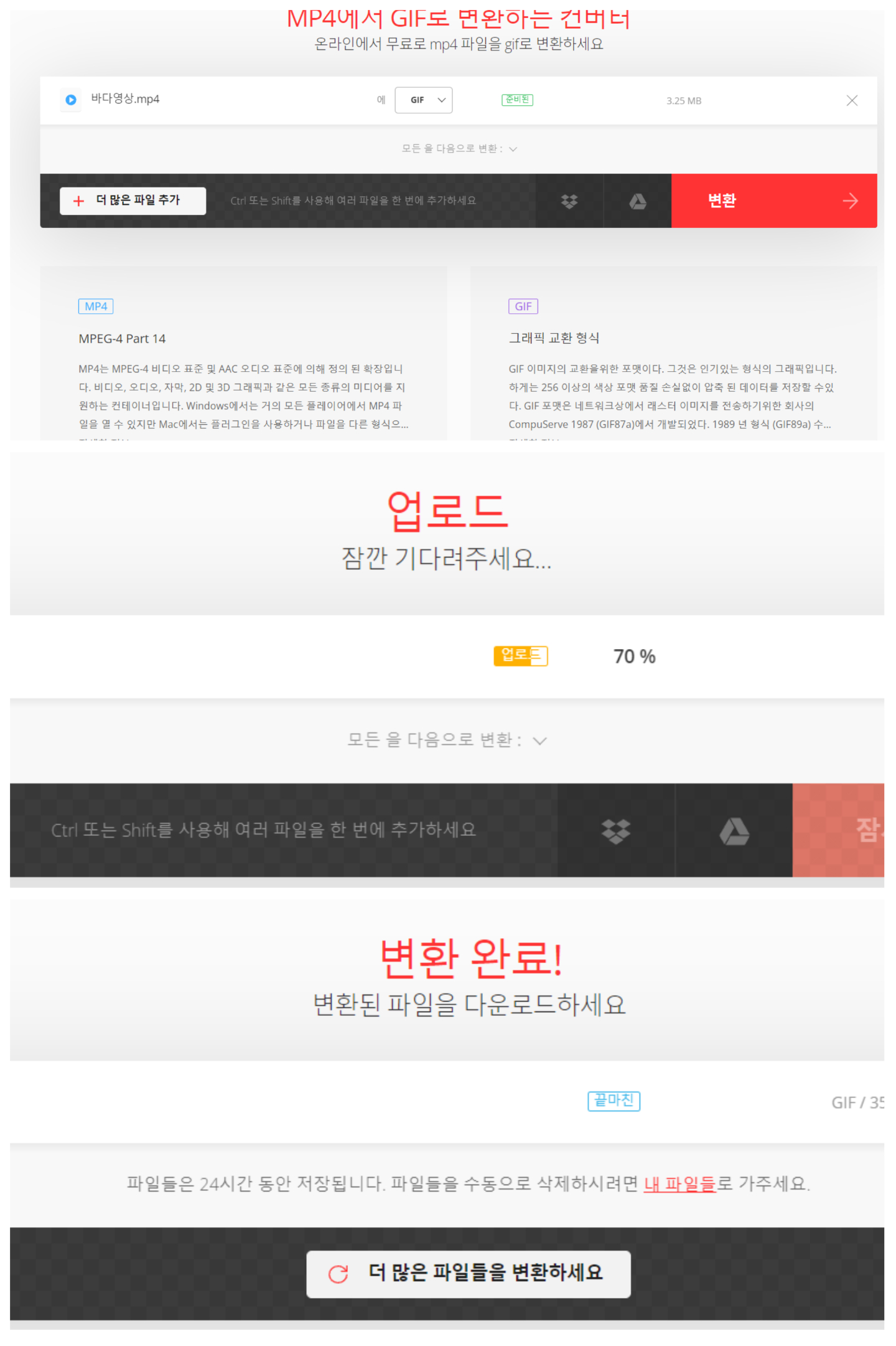 PNG, GIF로 변환 (GIF 생선시 JPG파일 여러 장 필요)