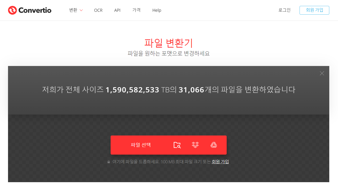 Convertio는 회원가입이나 로그인도 안 해도 됩니다.