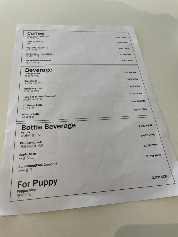 테이블 간격도 넓고, 예약으로 반려동물 지정석을 만들어주신 것도 배려가 깊은 것 같습니다.