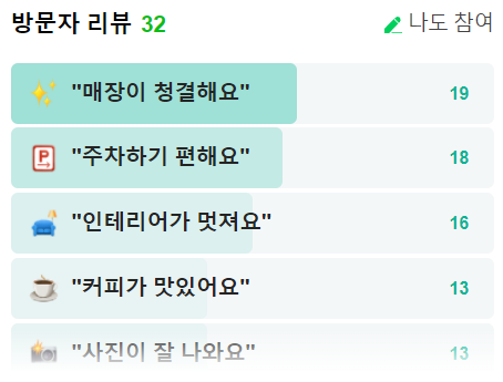 다른 분들 리뷰를 보니 인테리어, 매장 청결 이 대다수네요.