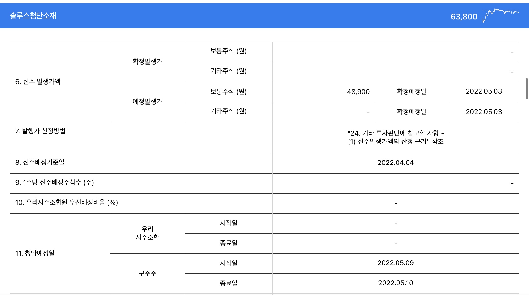 구주주 배정 후 남는 실권주에 대한 일반공모 청약은 5월 12(목) ~ 13일(금) 예정이다.