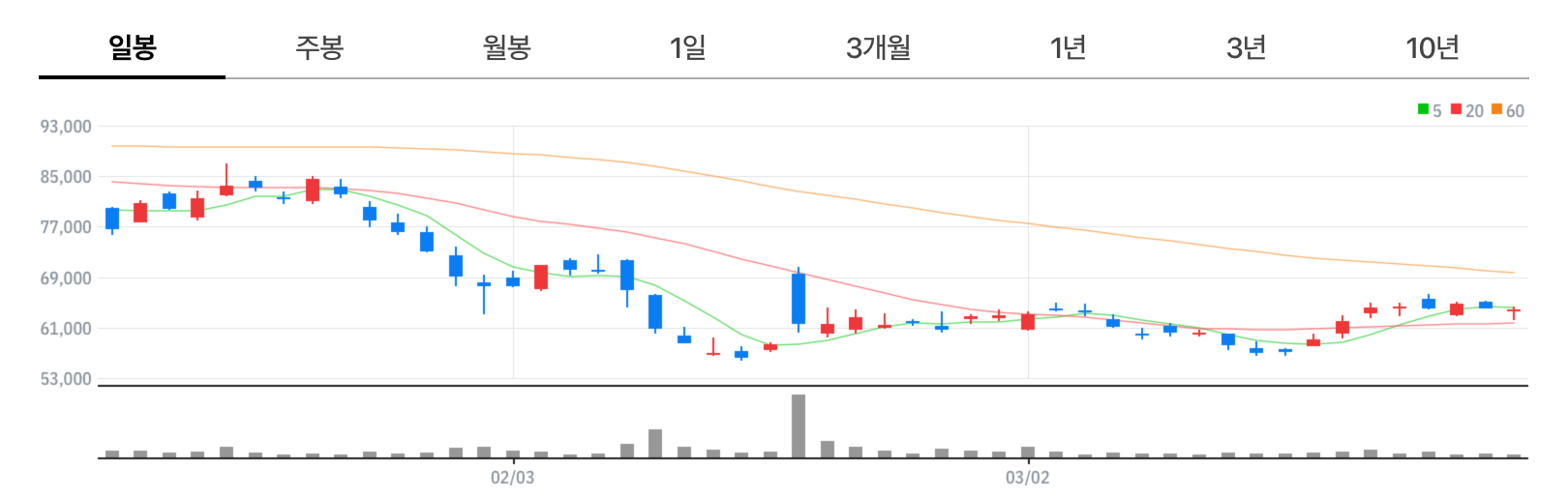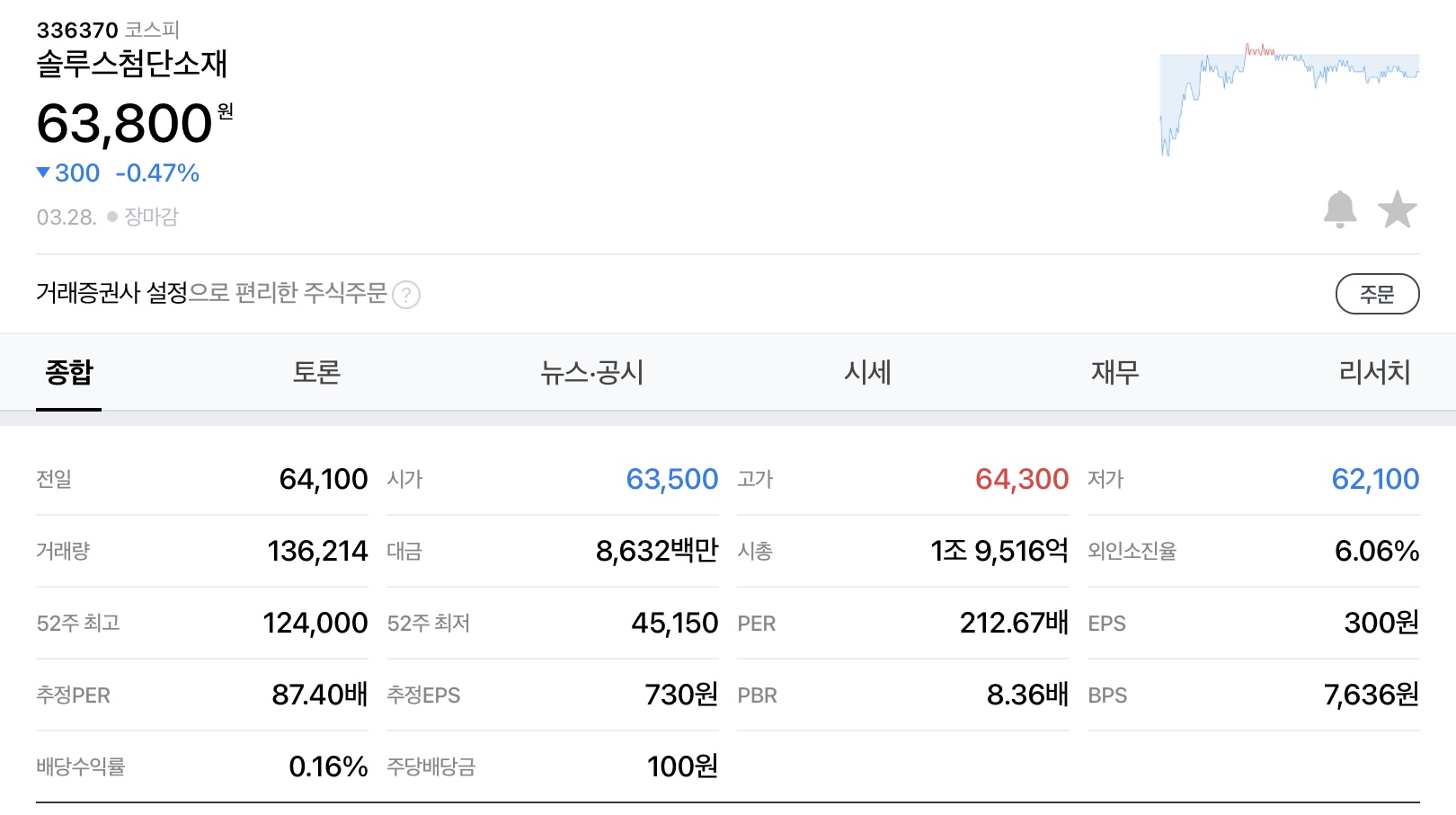 3월 28일 종가 기준 63,800원