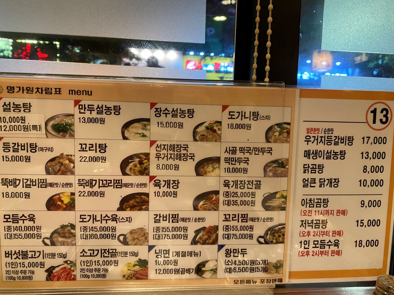 수내역 명가원설농탕 메뉴