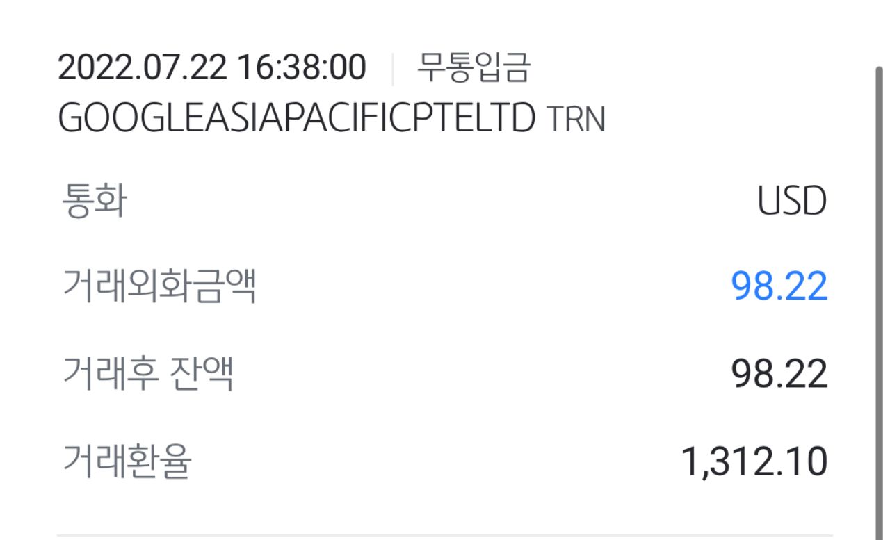 GOOGLE ASIA PACIFIC PTELTD USD 98.22 가 찍혀있습니다.