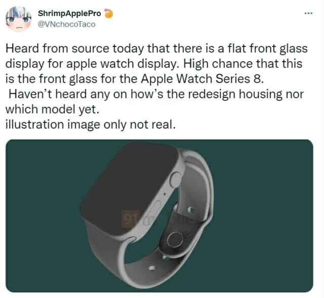 애플 워치 전면에 붙는 디스플레이가 평평한 유리로 제작될 수 있습니다. 지난 5월 IT팁스터 쉬림프애플프로는 작년 애플 워치 7의 디자인을 작업 중이라고 밝혔던 바가 있기에 이번 애플 워치 8에도 탑재가 될지 기대가 되는 대목입니다.