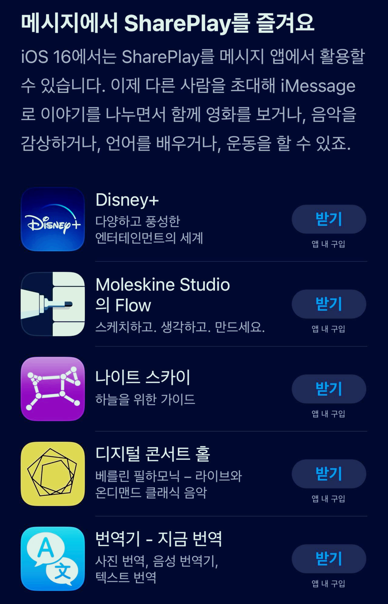 이제는 메시지를 통해 친구와 SharePlay를 하면서 영화, 음악, 게임 등 같은 콘텐츠를 공유할 수 있습니다.
