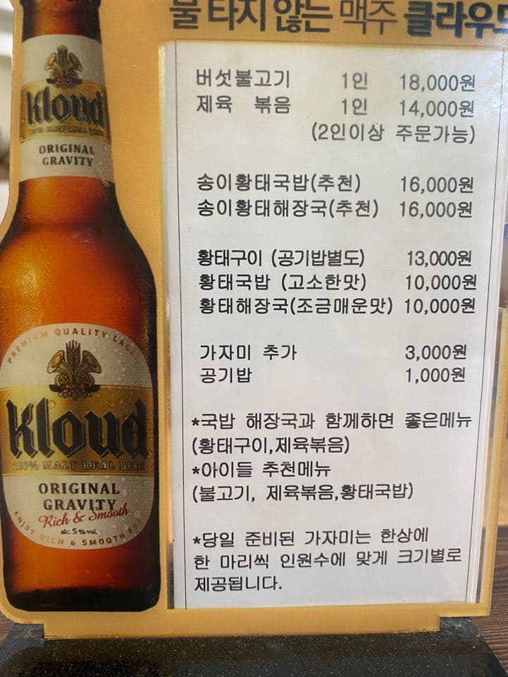 국밥은 먹어봤으니.. 황태구이가 기대가 되네요.