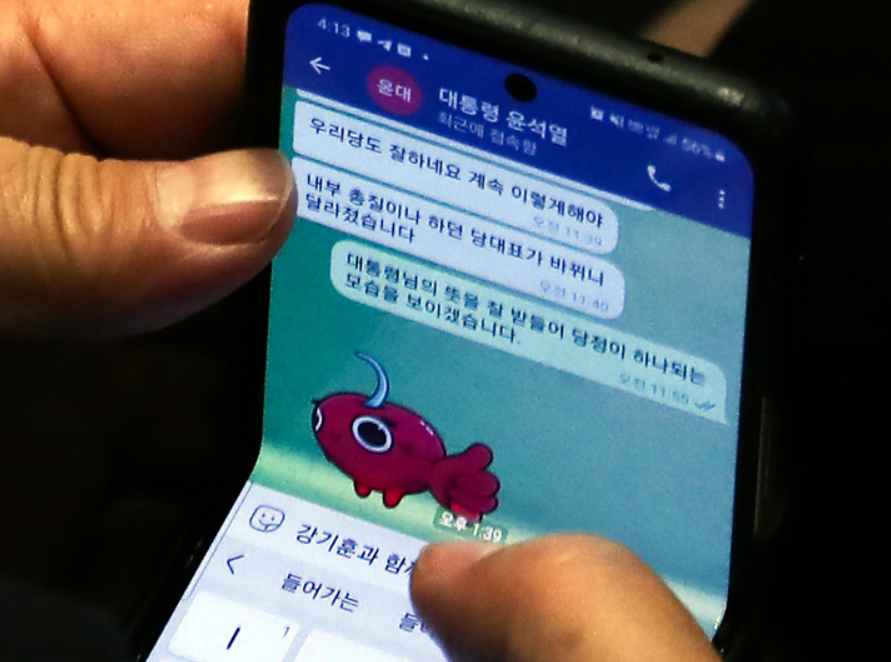 권성동 국민의 힘 원내대표가 윤 대통령과의 텔레그램에서