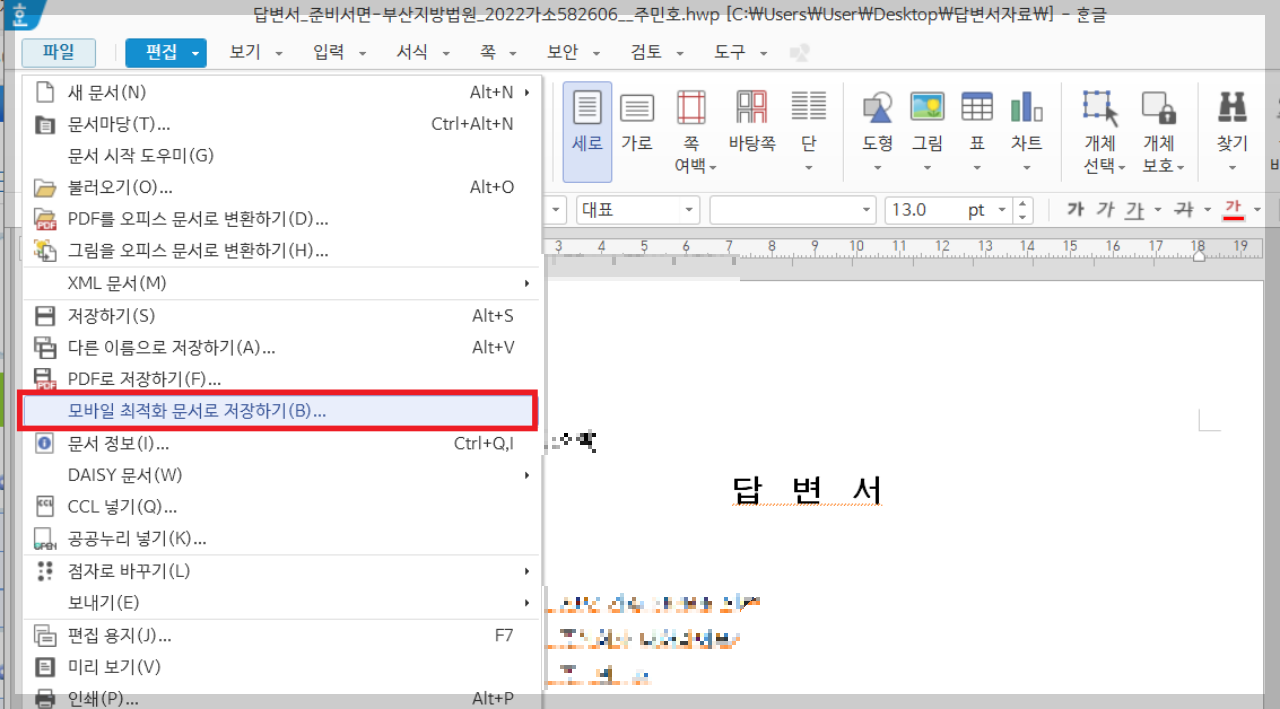 [파일 > 모바일 최적화 문서로 저장]