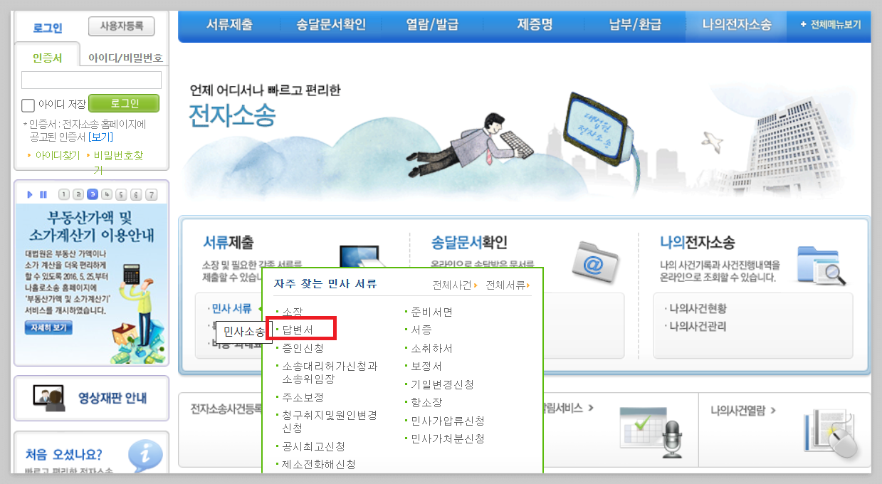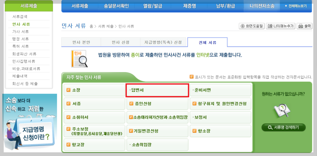 민사 답변서 등록하기