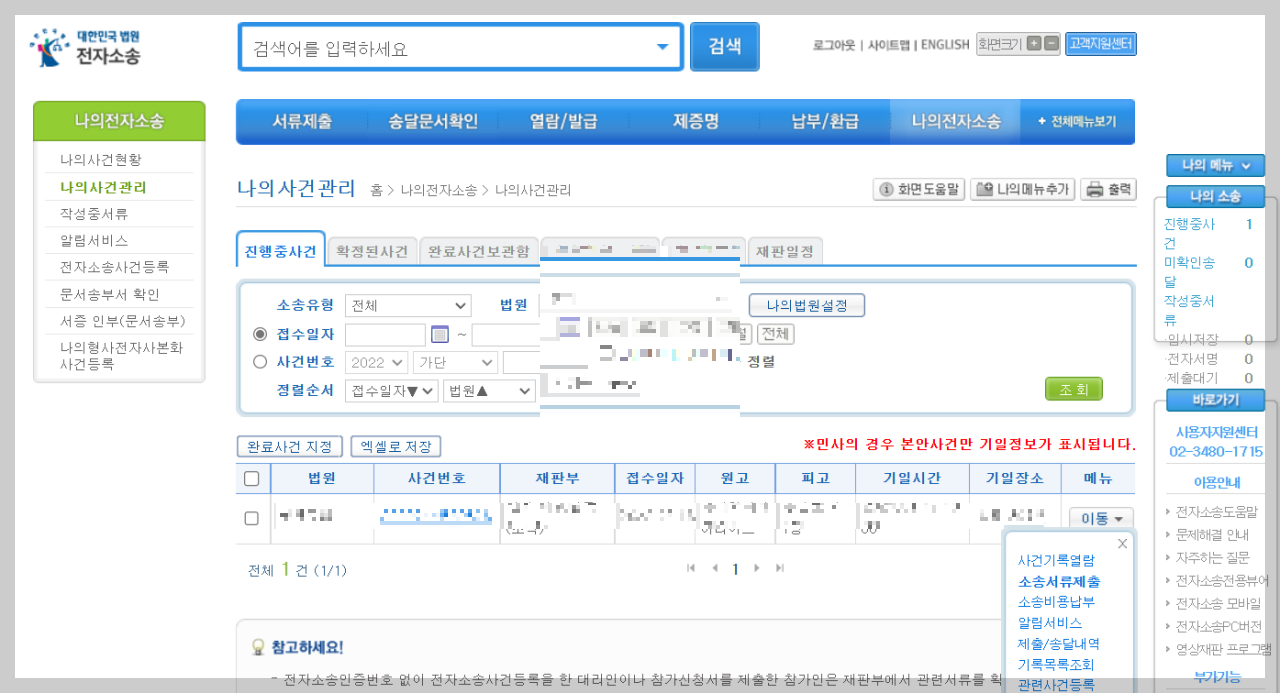 나의 사건관리 페이지가 나옵니다.