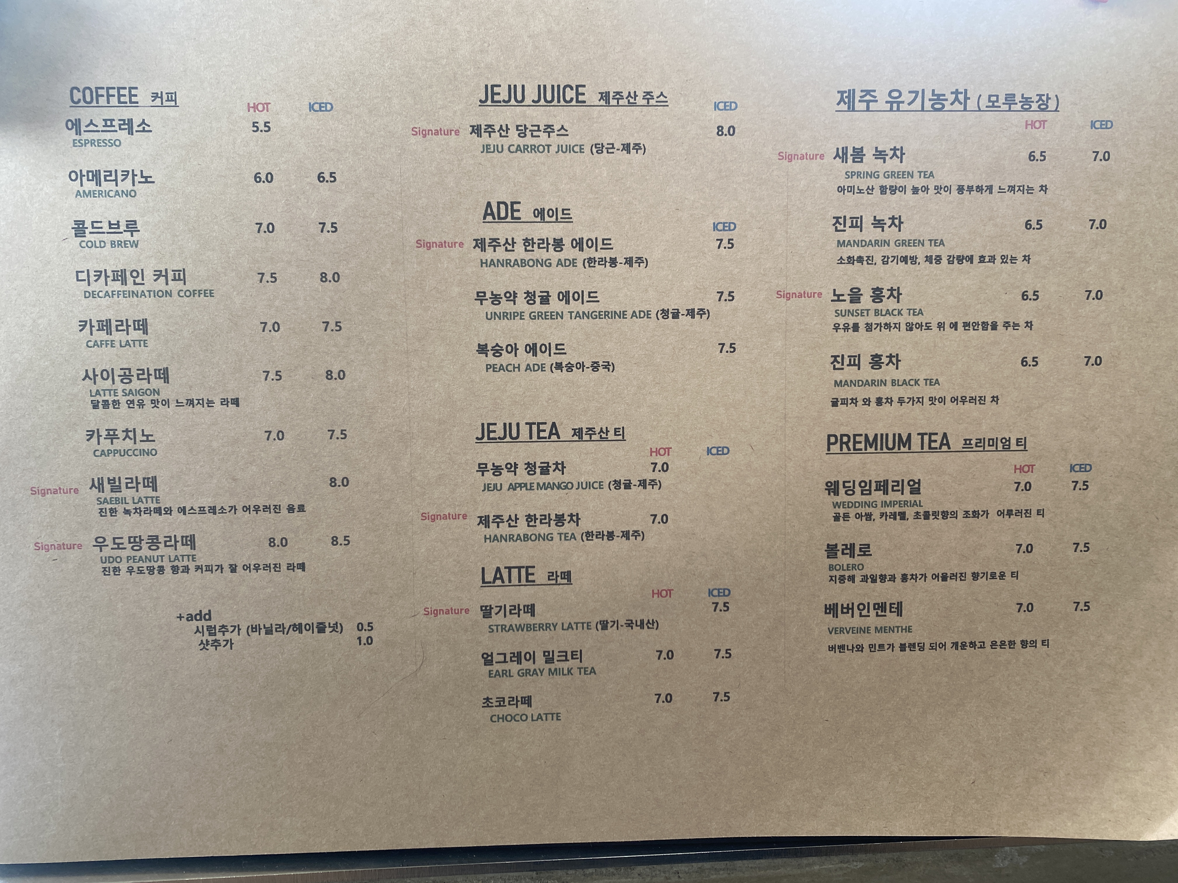 저희는 아이스 아메리카노, 아메리카노, 노을 홍차와