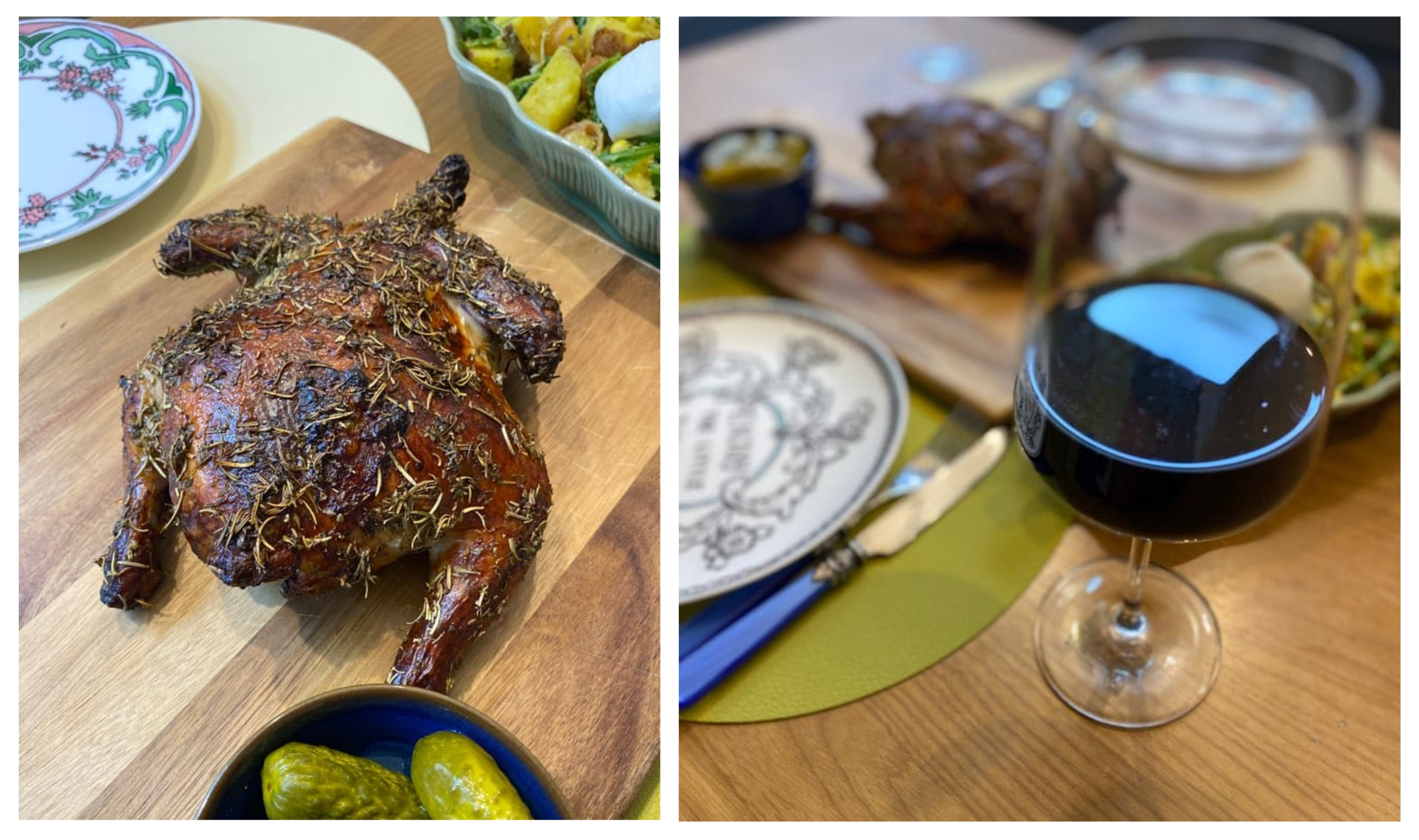정말 겉바속촉이 제대로 된 로즈마리 블랙컨드치킨과 와인을 곁들여 먹으니