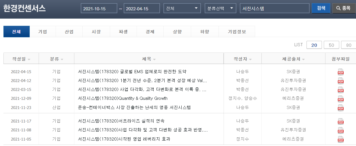 오늘 서진시스템에 대한 보고서가 올라왔습니다.