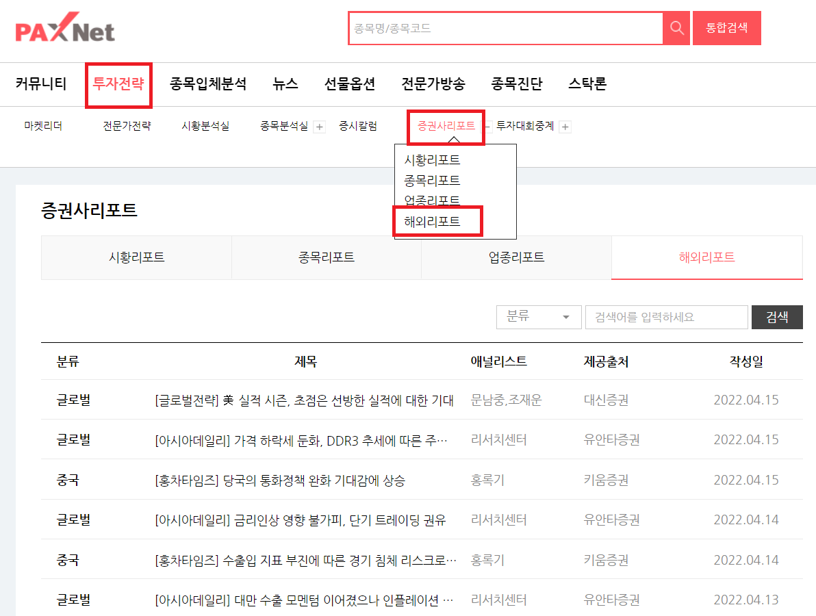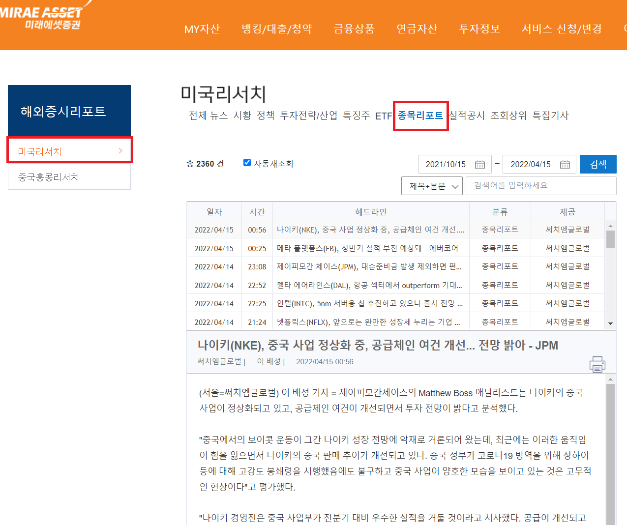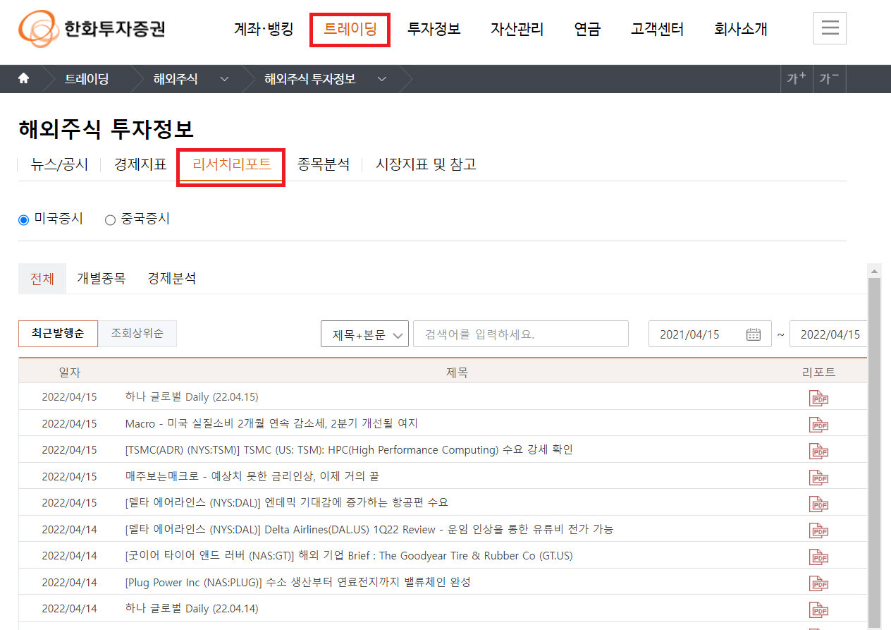 지금부터는 각 증권사 홈페이지에서 제공하는 해외주식 리포트 링크를 정리해드립니다.