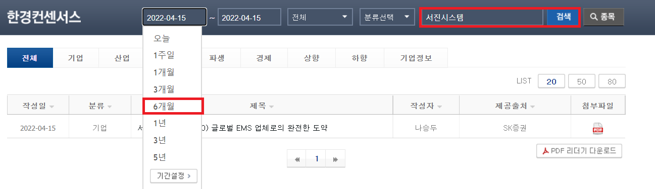 6개월간 올라온 보고서를 검색해보겠습니다.