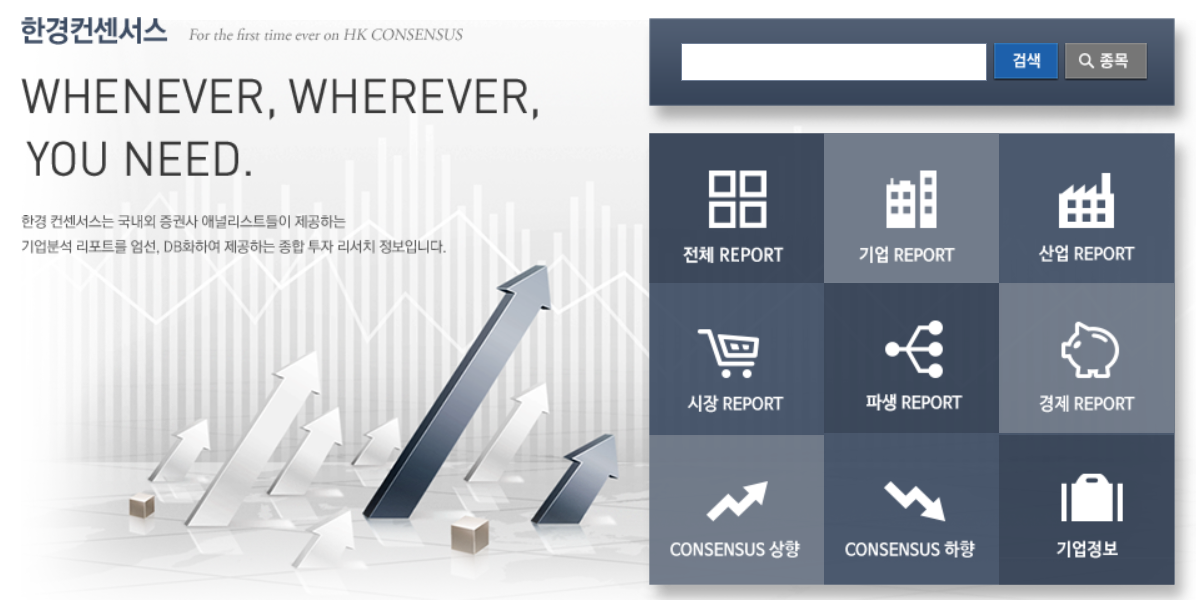 저는 한경컨센서스에서 국내의 종목 리포트를 살펴봅니다.