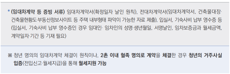 * 대리 신청 시, 청년 명의 임대차 계약이 원칙이며, 청년월세 지원금은 청년 본인 계좌로 지급됨