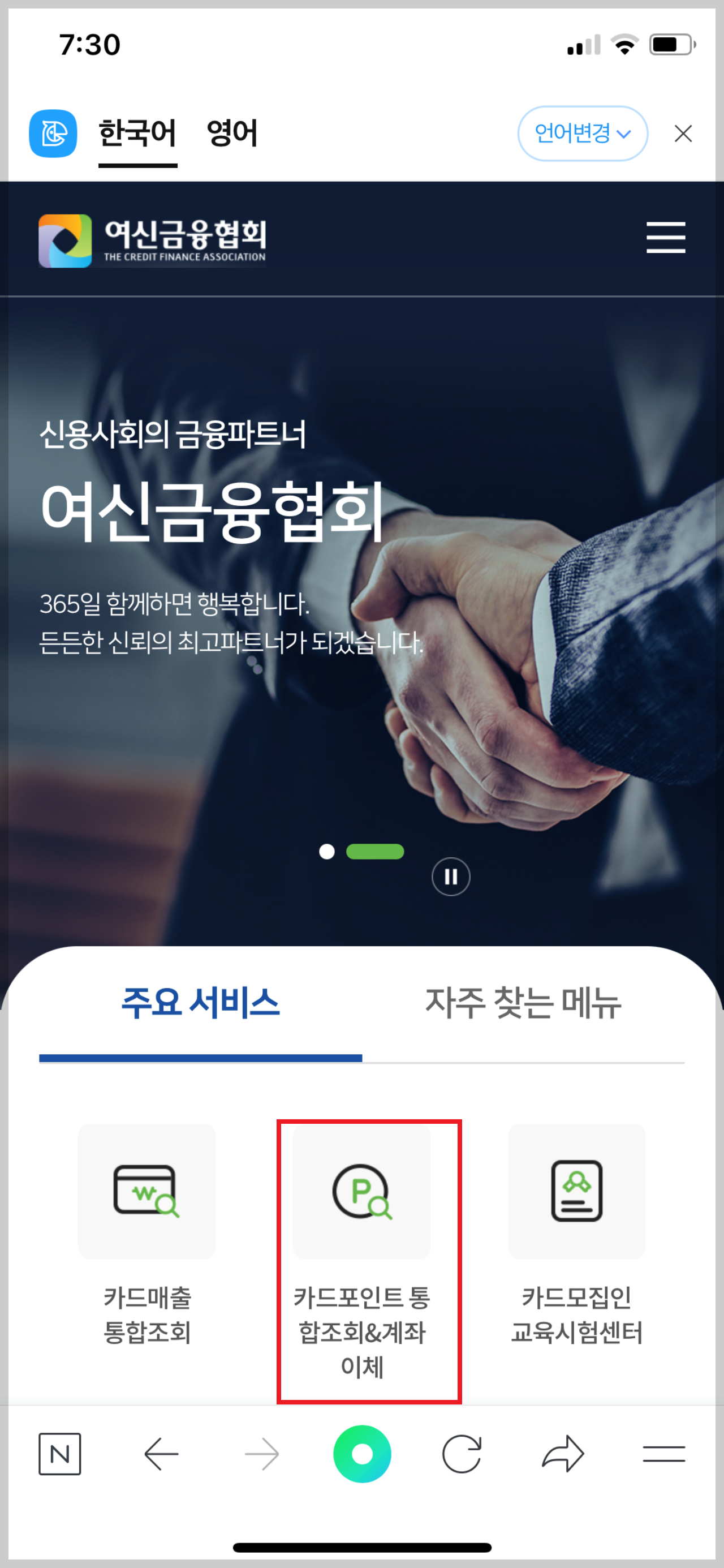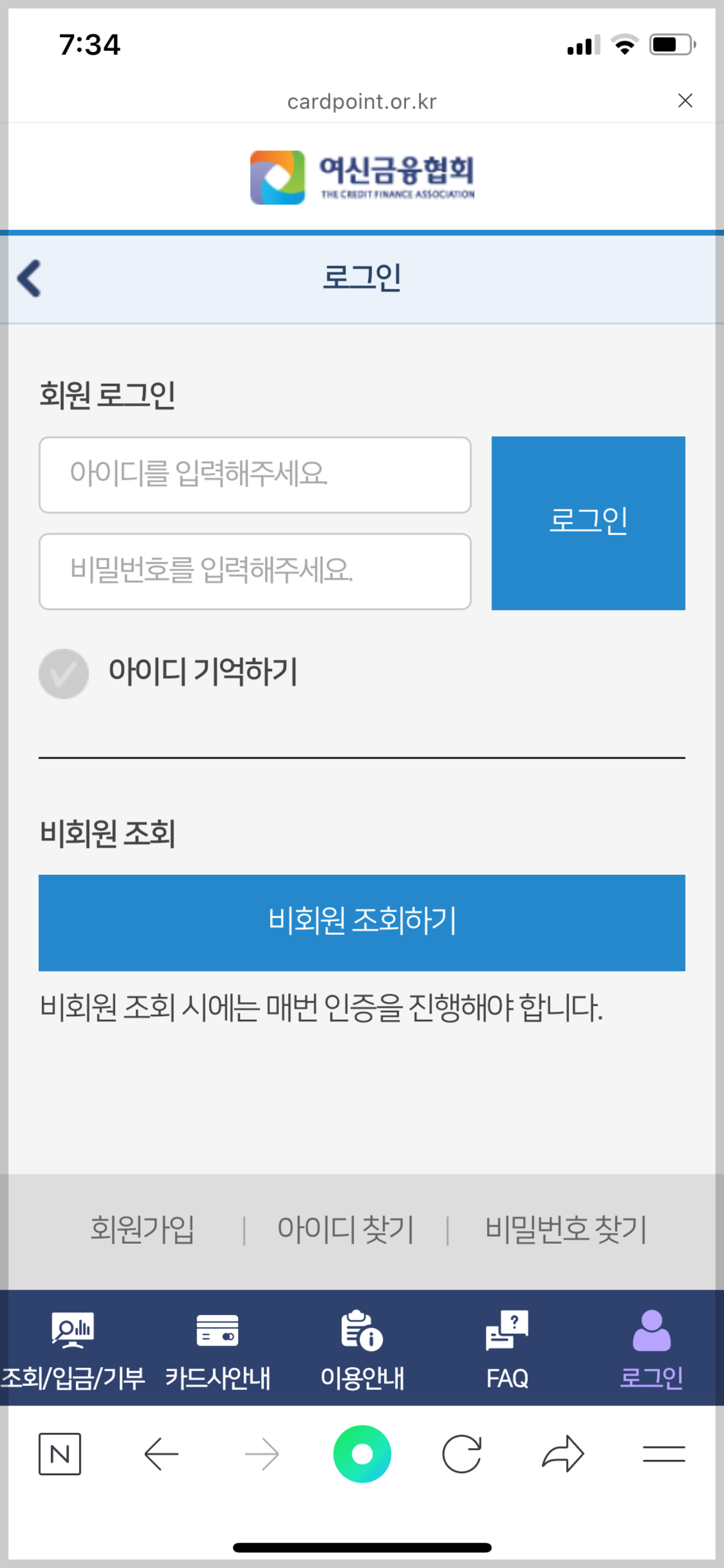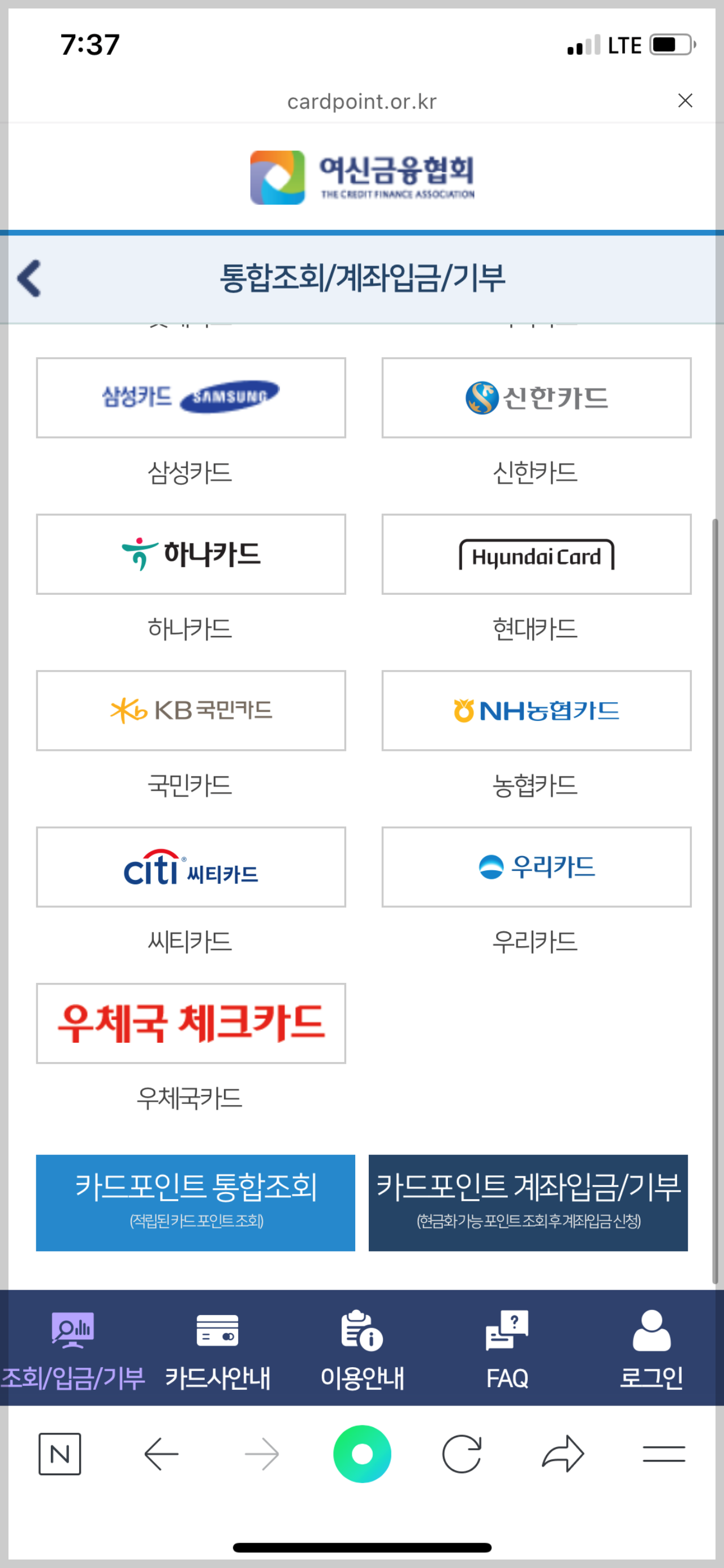 여신금융협회에서 카드 포인트 통합조회하고 현금으로 계좌입금받기