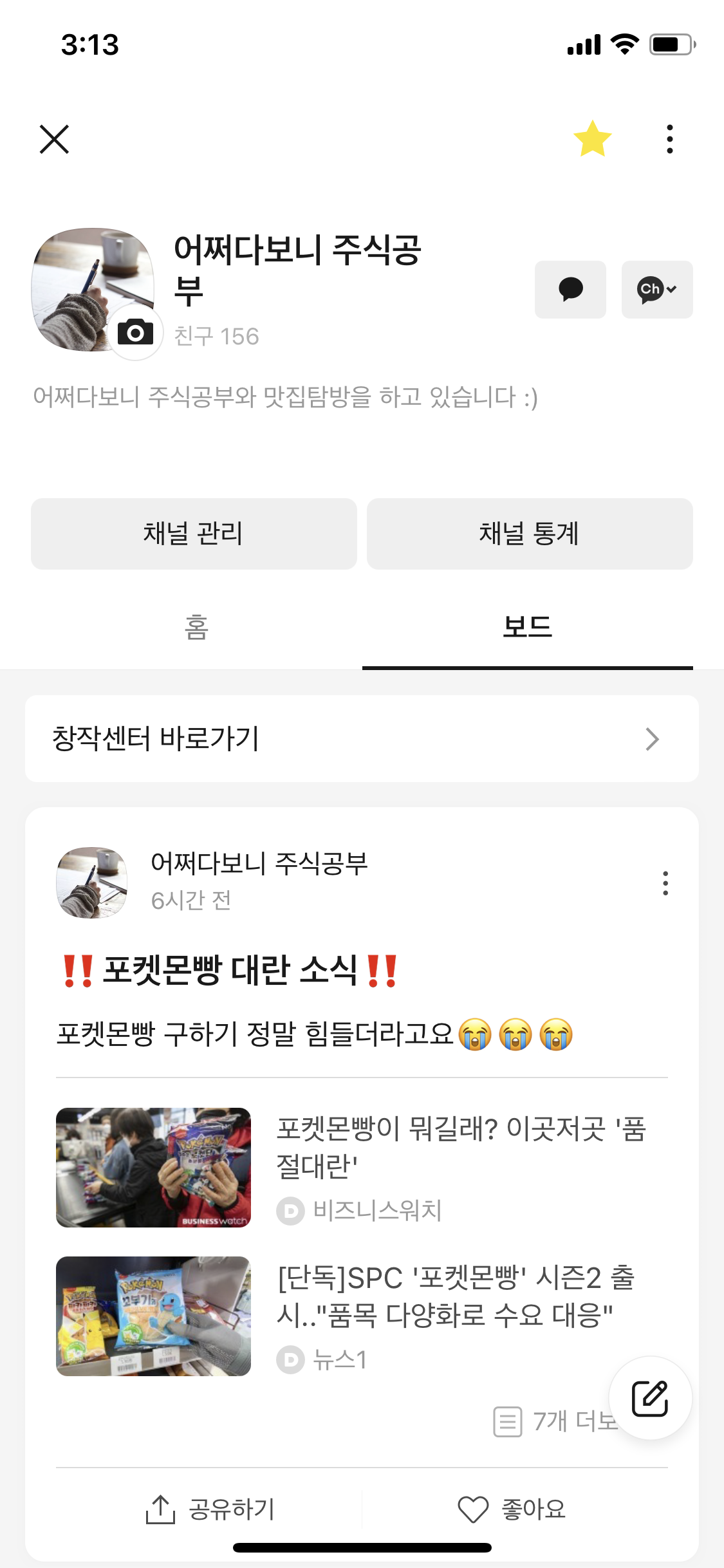 제가 만들었던 "어쩌다보니 주식공부" 카카오 뷰 채널입니다.