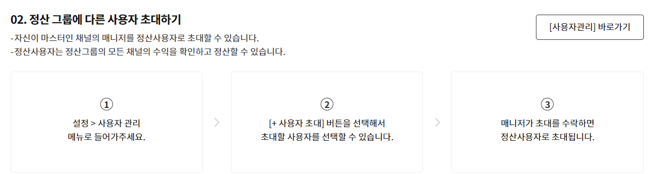 정산 관리자를 초대해서 관리자를 정해둘 수 있네요