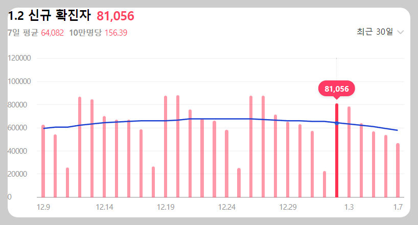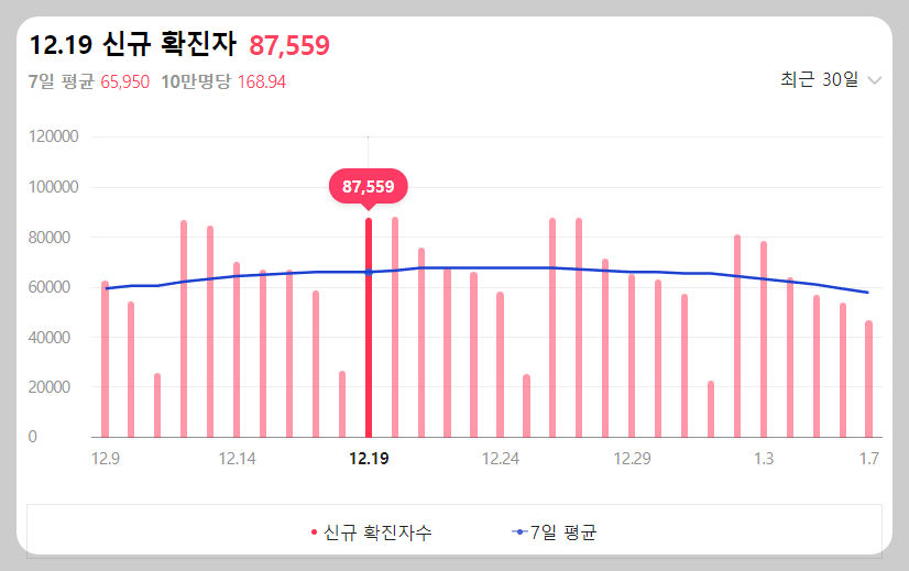 코로나 확진자 1일 80~87만 명, 7일 평균 65만 명..아직 끝나지 않았습니다.