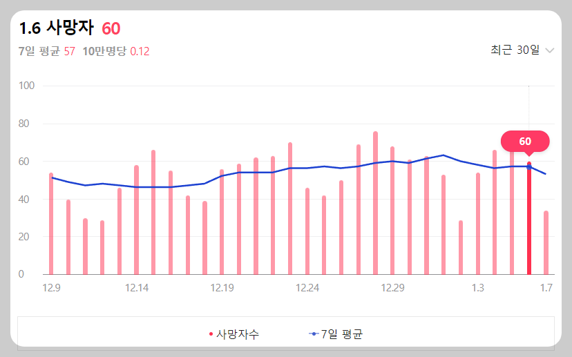 하루에 약 60명가량이 사망하고 있습니다.