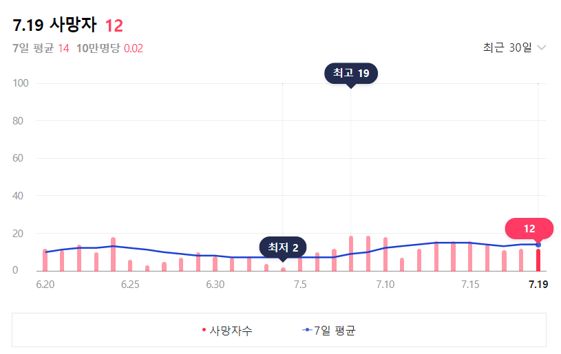 코로나 확진자수가 최근 30일 데이터를 봤을때 최고치를 찍었습니다.
