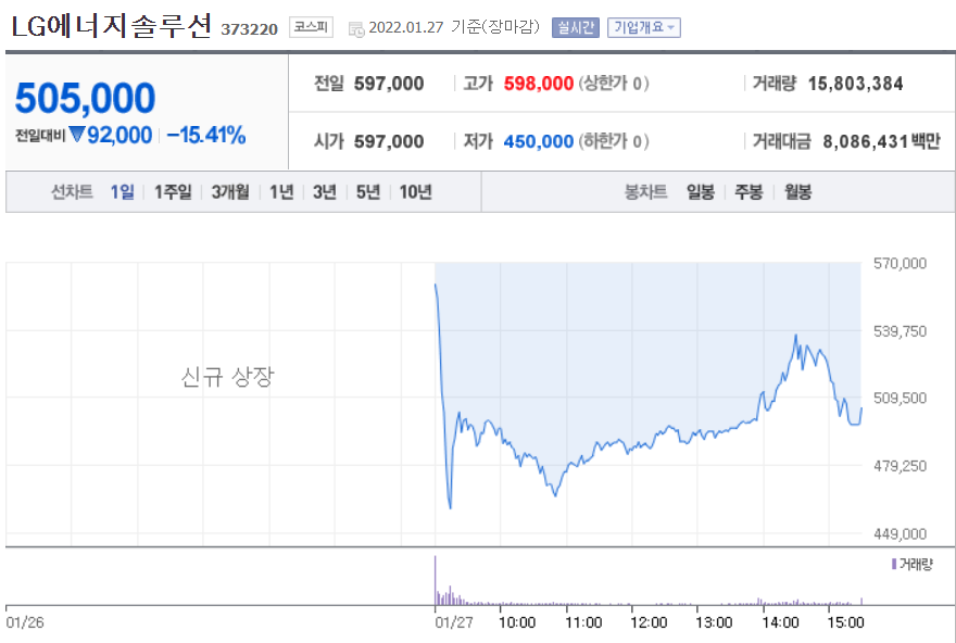 많은 관심을 모았던 LG에너지솔루션은 장 시작 전에는 화끈했으나