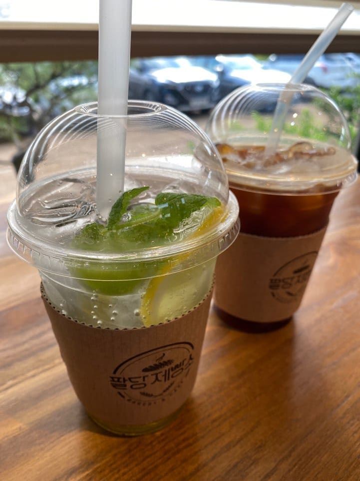 음료는 청포도 에이드와 아이스 아메리카노를 시켰습니다.