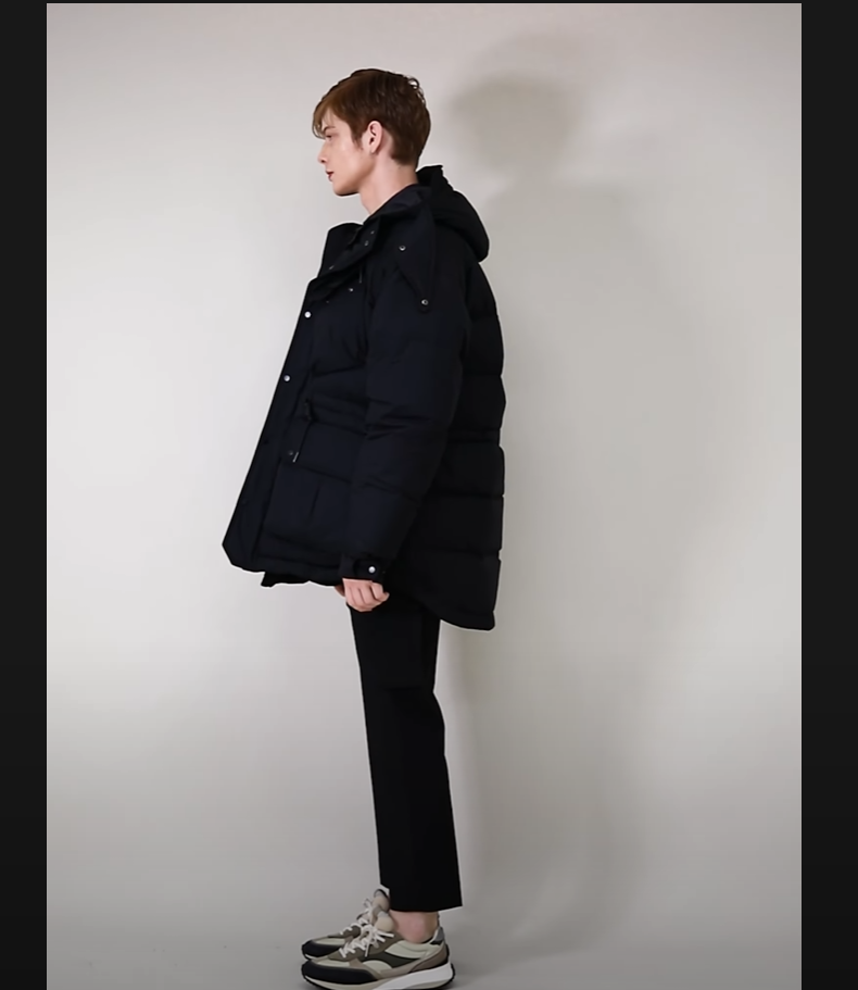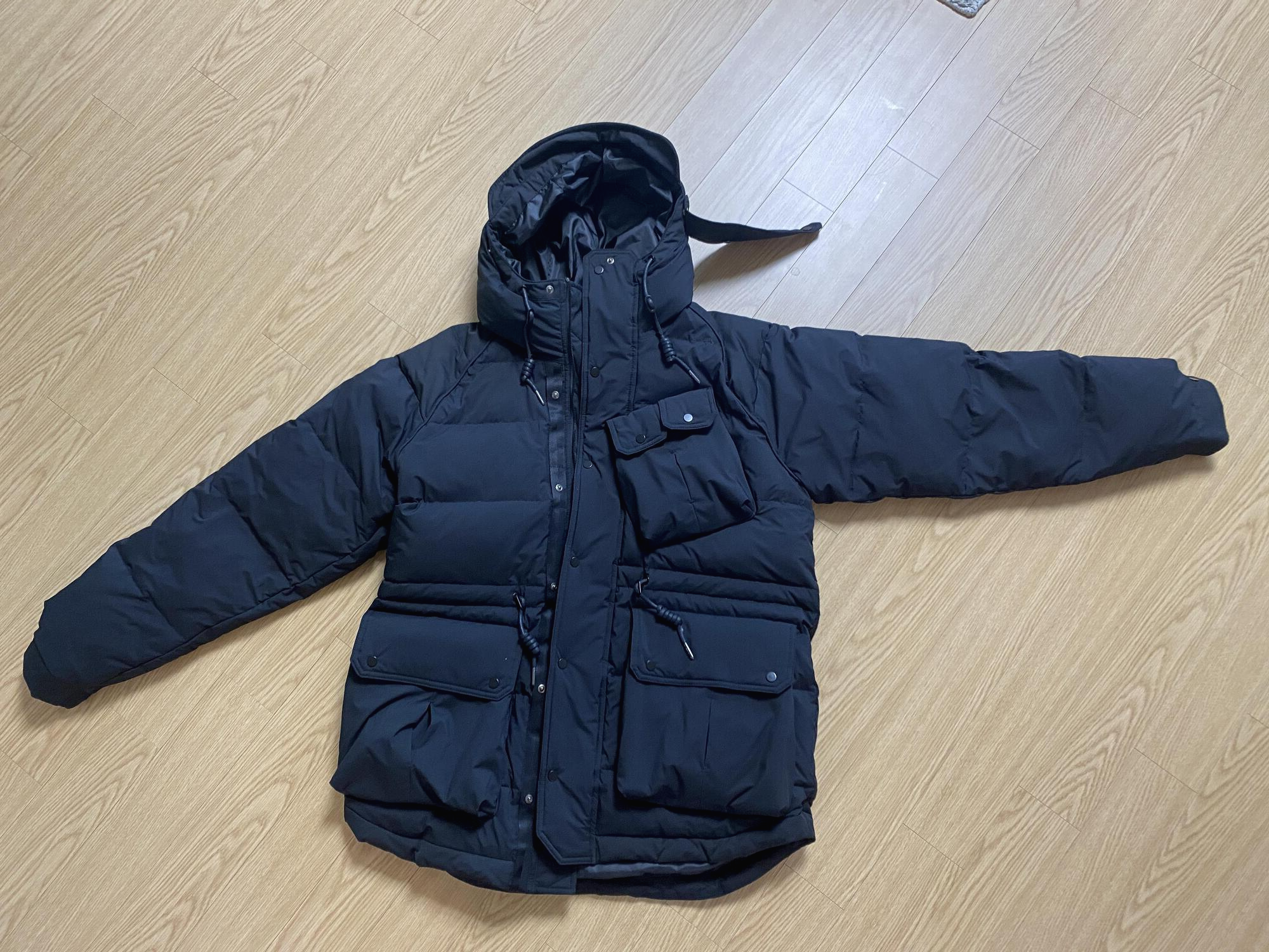 블랙 스트링 후드 구스다운 오버핏 점퍼네요.ㅎㅎ