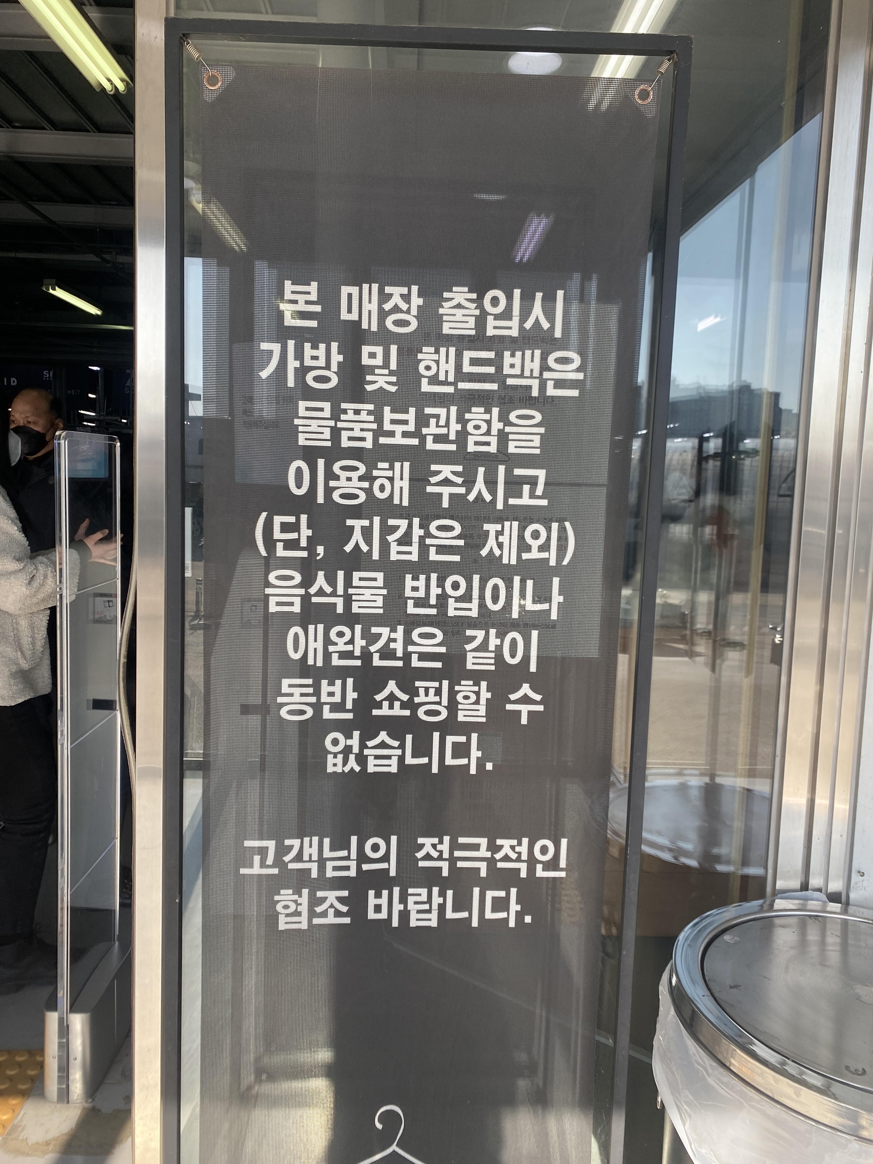 정말 작은 핸드백 들고 계신 여성분이 계셨는데 직원분이 바로 제재하더라고요.