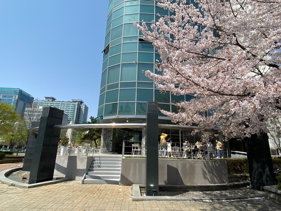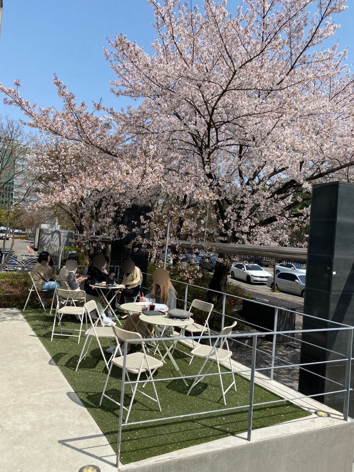 그런데 바로 앞 테라스에 벚꽃 나무가 엄청 멋있게 자리 잡고 있어요