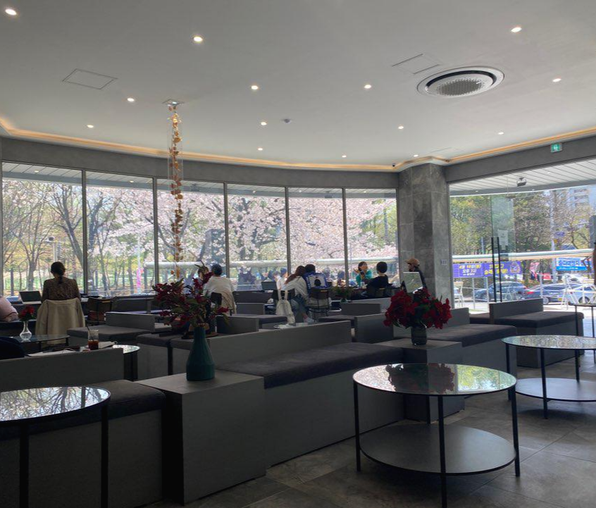 그런데 바로 앞 테라스에 벚꽃 나무가 엄청 멋있게 자리 잡고 있어요