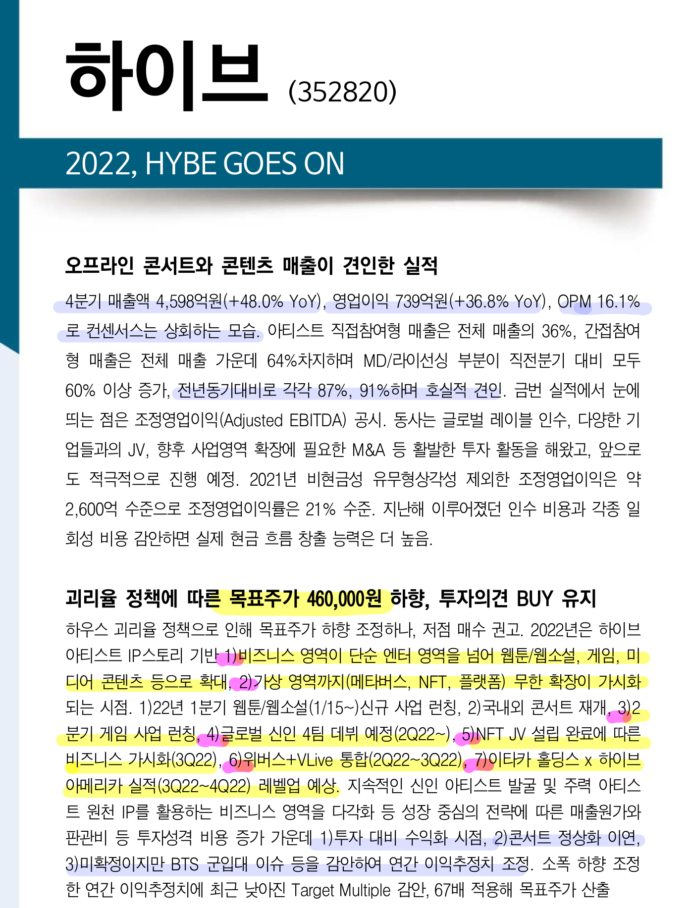기분 탓인가 보고서가 뭔가 쉽게 읽히는 게 반도체 관련 보고서만 보다가 엔터 쪽 종목이라 그런 건지..ㅎ