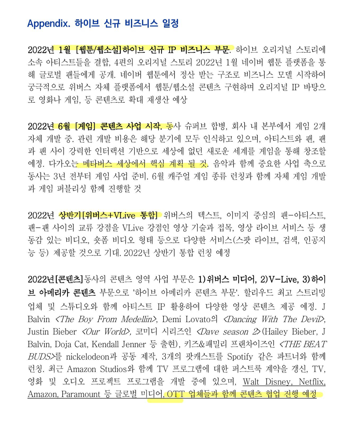 하이브 2022년 신규 비즈니스 일정을 살펴보면,