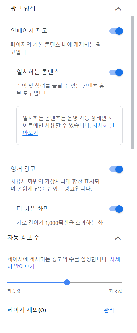 합격이 되고 나서는 애드센스 메뉴가 보이더라고요.