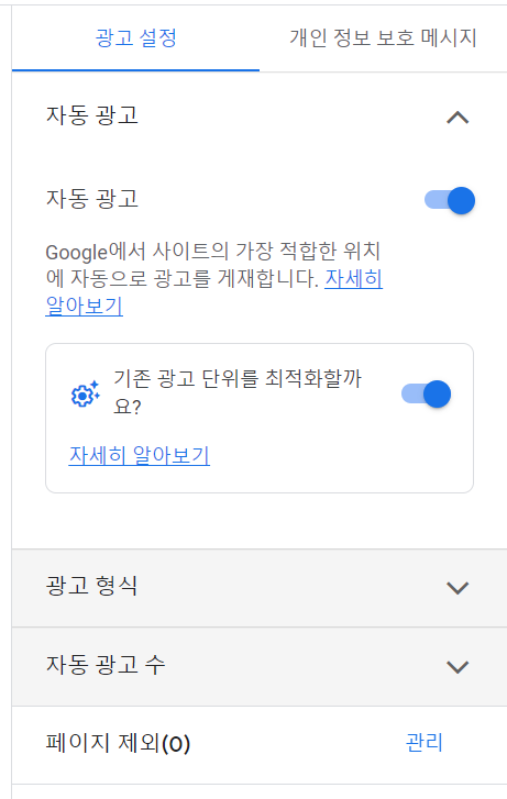 여기에서 "광고설정"을 어떻게했는지 정리해보겠습니다.